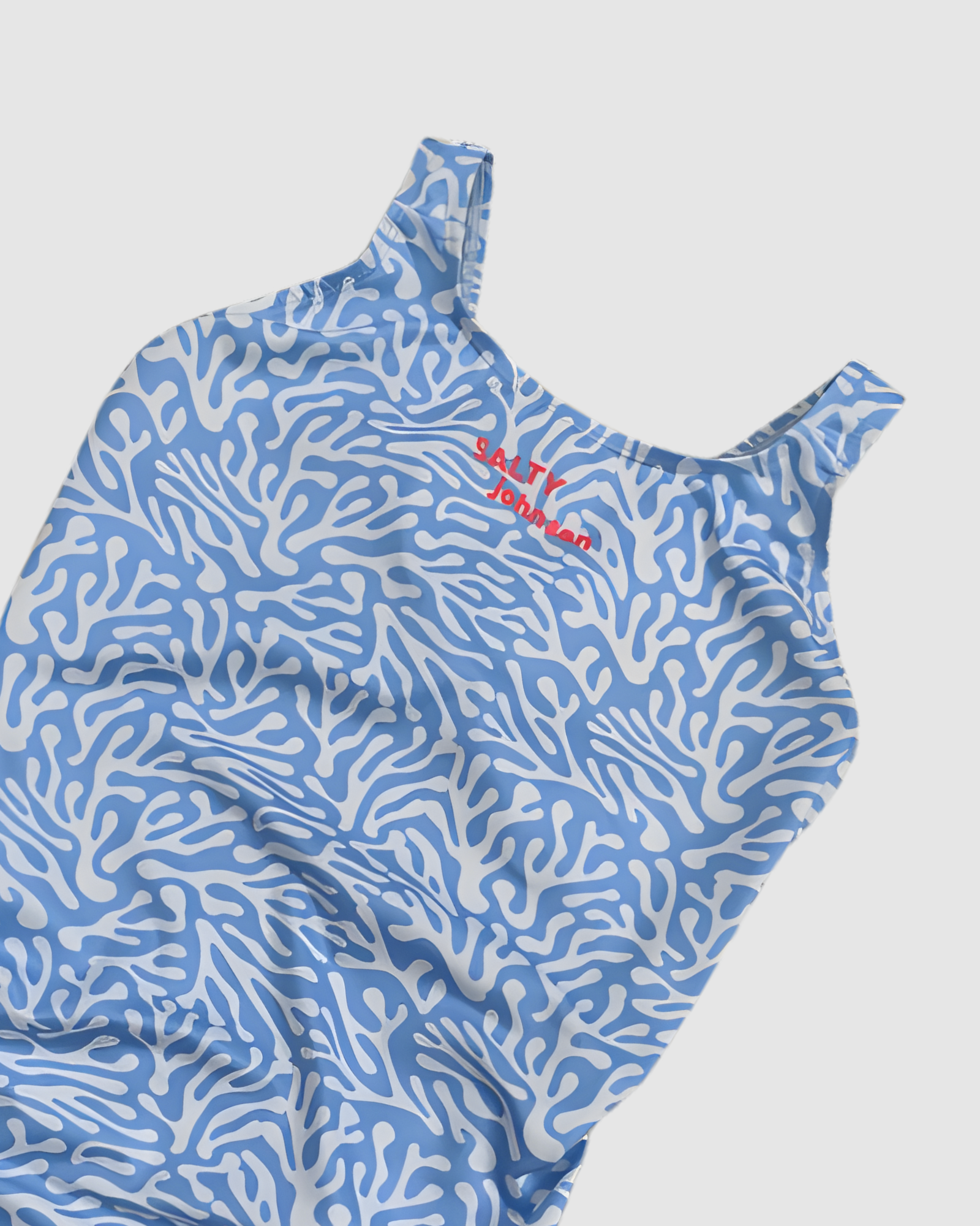 Dive into summer confidence with the Blue Coral One Piece by Salty Johnson, a sustainably crafted, sleek, supportive swimsuit designed for women who want comfort, style, personality, and planet-friendly performance all in one. Made from premium recycled polyester rescued from oceans and landfill, this eco-conscious one piece proves that sustainability and swimwear spice can absolutely coexist. The Blue Coral print blends bright reef-inspired tones with a bold, modern vibe made for pool sessions, beach days, holidays, and those “I need a cute suit ASAP” moments.